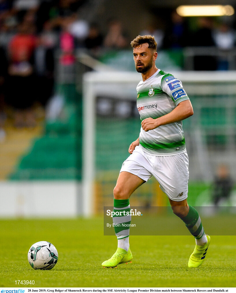 28 June 2019; Greg Bolger of Shamrock Rovers during the SSE Airtricity League Premier Division match between Shamrock Rovers and Dundalk at Tallaght Stadium in Dublin. Photo by Eóin Noonan/Sportsfile