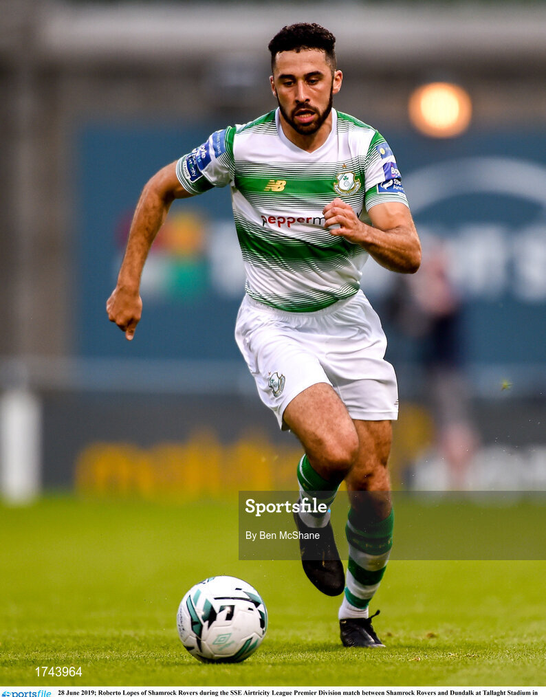 28 June 2019; Roberto Lopes of Shamrock Rovers during the SSE Airtricity League Premier Division match between Shamrock Rovers and Dundalk at Tallaght Stadium in Dublin. Photo by Ben McShane/Sportsfile