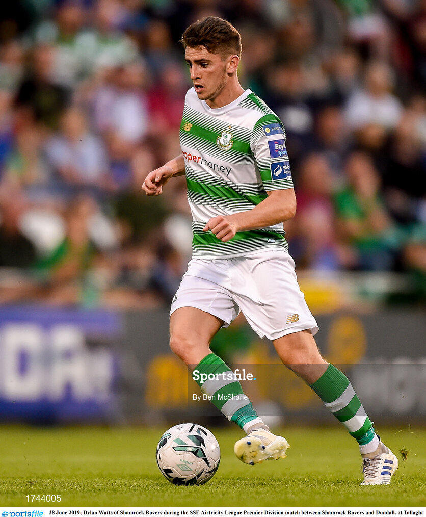 28 June 2019; Dylan Watts of Shamrock Rovers during the SSE Airtricity League Premier Division match between Shamrock Rovers and Dundalk at Tallaght Stadium in Dublin. Photo by Ben McShane/Sportsfile