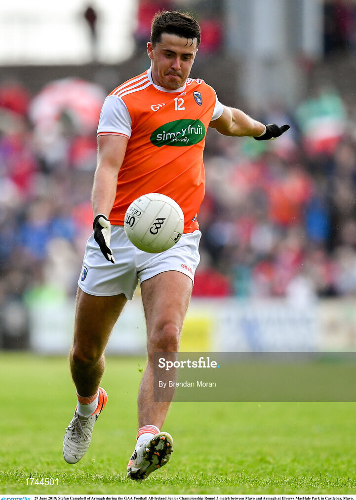 29 June 2019; Stefan Campbell of Armagh during the GAA Football All-Ireland Senior Championship Round 3 match between Mayo and Armagh at Elverys MacHale Park in Castlebar, Mayo. Photo by Brendan Moran/Sportsfile