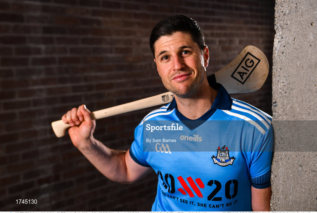 4 July 2019; AIG Ireland announced today that the logo of the 20x20 campaign will replace their logo on the front of the Dublin GAA jersey for upcoming ladies’ football, camogie, football & hurling fixtures. David Treacy of Dublin was at the launch today to help promote awareness of this “If She Can’t See It, She Can’t Be It” initiative, designed to shift Ireland’s cultural perception of women’s sport by increasing media coverage, participation & attendance in women’s sport by 20% by the year 2020. Photo by Sam Barnes/Sportsfile