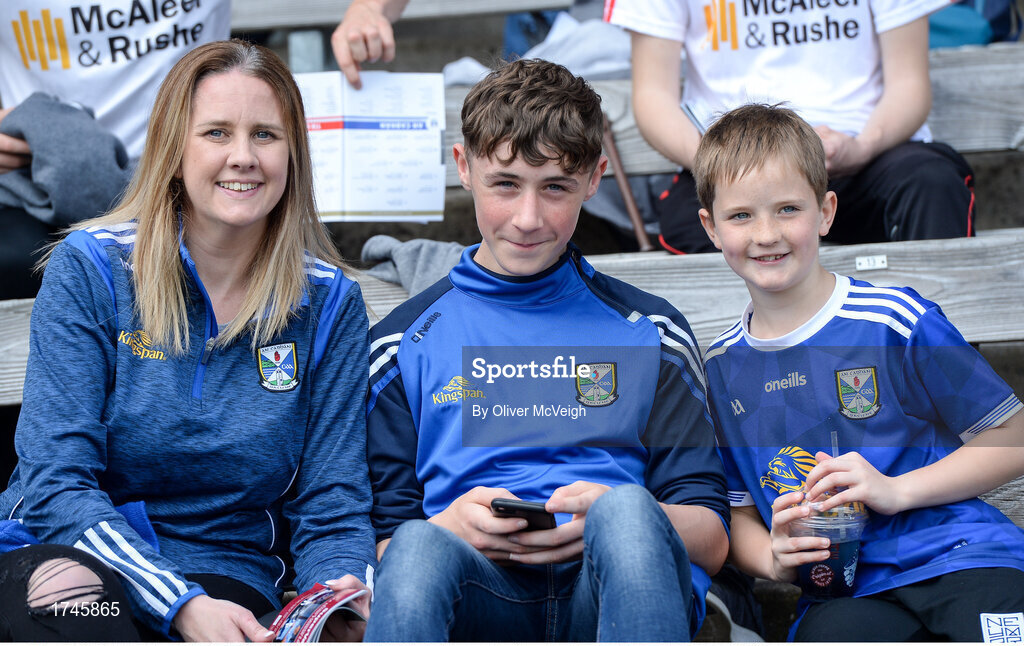 6 July 2019; Faith Daly, Barry Cahill and Dylan Daly from Knockbride Co. Cavan before the GAA Football All-Ireland Senior Championship Round 4 match between Cavan and Tyrone at St. Tiernach's Park in Clones, Monaghan. Photo by Oliver McVeigh/Sportsfile