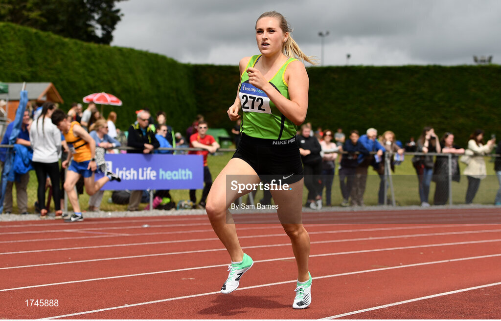 6 July 2019; Carla Sweeney of Rathfarnham W.S.A.F. A.C., Co.Dublin, on her way to winning the U23 1500m event during the Irish Life Health Junior and U23 Outdoor Track and Field Championships at Tullamore Harriers Stadium, Tullamore in Offaly. Photo by Sam Barnes/Sportsfile
