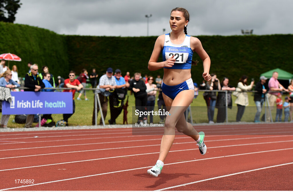 6 July 2019; Ava O'Connor of Tullamore Harriers A.C., Co.Offaly, on her way to winning the Junior 1500m during the Irish Life Health Junior and U23 Outdoor Track and Field Championships at Tullamore Harriers Stadium, Tullamore in Offaly. Photo by Sam Barnes/Sportsfile