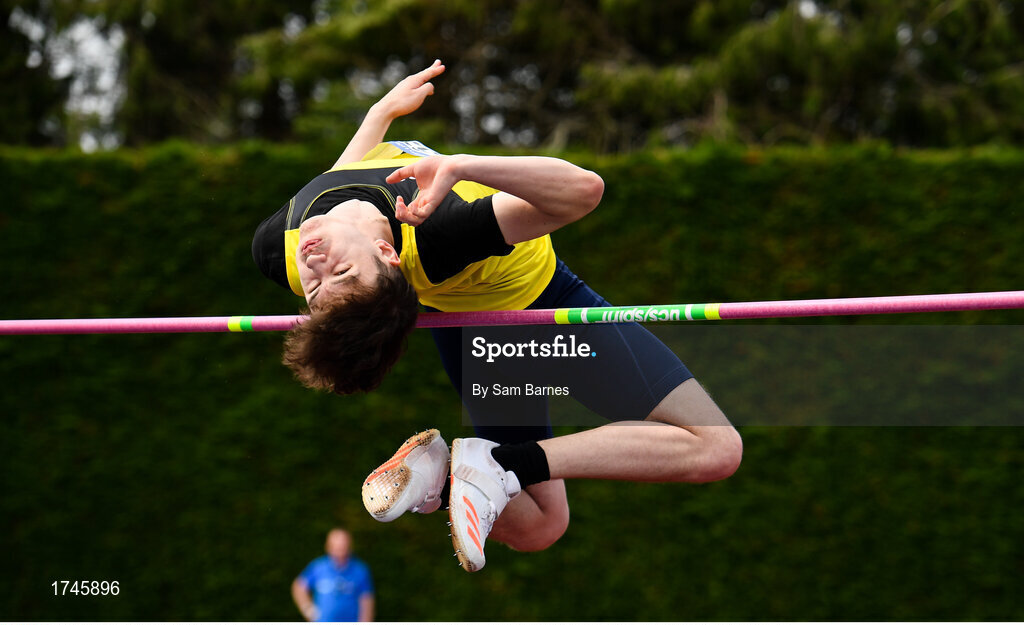 6 July 2019; Ryan Carthy Walshe of Adamstown A.C., Co. Wexford, competing in the U23 High Jump event during the Irish Life Health Junior and U23 Outdoor Track and Field Championships at Tullamore Harriers Stadium, Tullamore in Offaly. Photo by Sam Barnes/Sportsfile