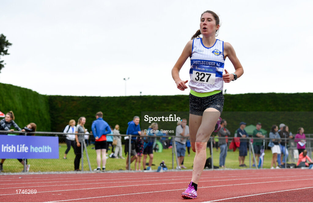 6 July 2019; Lauren Dermody of Castlecomer A.C., Co. Kilkenny, on her way to winning the U23 3000m event during the Irish Life Health Junior and U23 Outdoor Track and Field Championships at Tullamore Harriers Stadium, Tullamore in Offaly. Photo by Sam Barnes/Sportsfile