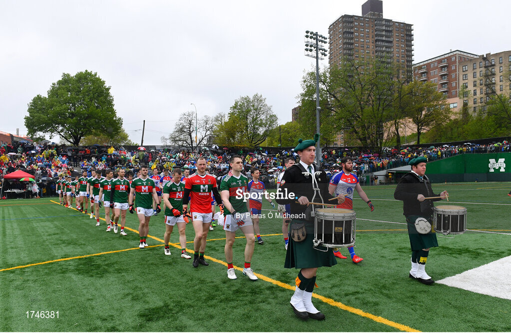 5 May 2019; Both teams in the parade before the Connacht GAA Football Senior Championship Quarter-Final match between New York and Mayo at Gaelic Park in New York, USA. Photo by Piaras Ó Mídheach/Sportsfile