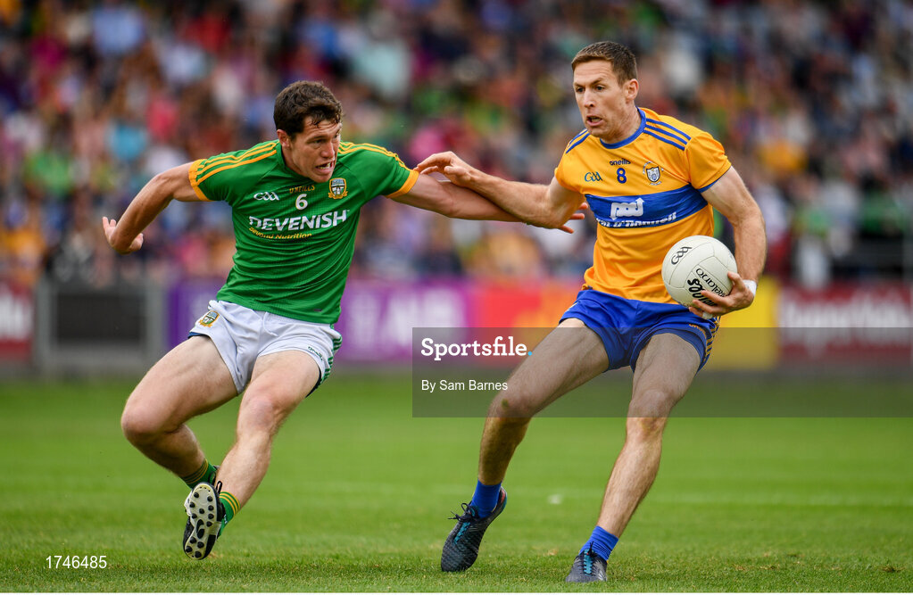 7 July 2019; Gary Brennan of Clare in action against Padraic Harnan of Meath during the GAA Football All-Ireland Senior Championship Round 4 match between Meath and Clare at O’Moore Park in Portlaoise, Laois. Photo by Sam Barnes/Sportsfile