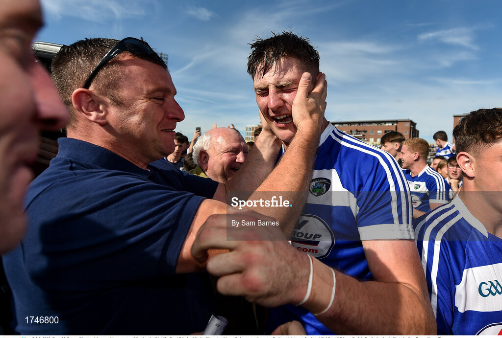 7 July 2019; Ryan Mullaney of Laois celebrates with supporters following the GAA Hurling All-Ireland Senior Championship preliminary round quarter-final match between Laois and Dublin at O’Moore Park in Portlaoise, Laois. Photo by Sam Barnes/Sportsfile