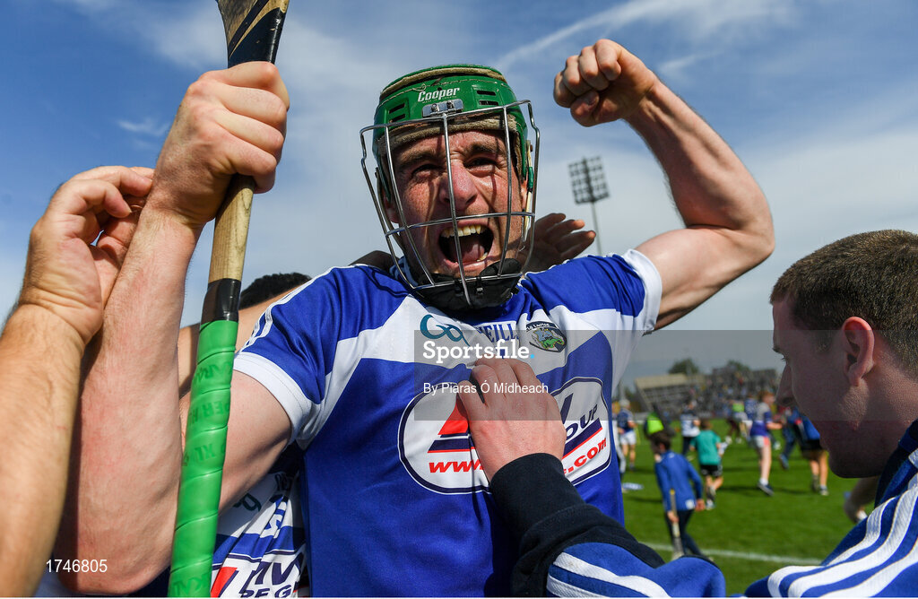 7 July 2019; Paddy Purcell of Laois celebrates with supporters after the GAA Hurling All-Ireland Senior Championship preliminary round quarter-final match between Laois and Dublin at O’Moore Park in Portlaoise, Laois. Photo by Piaras Ó Mídheach/Sportsfile