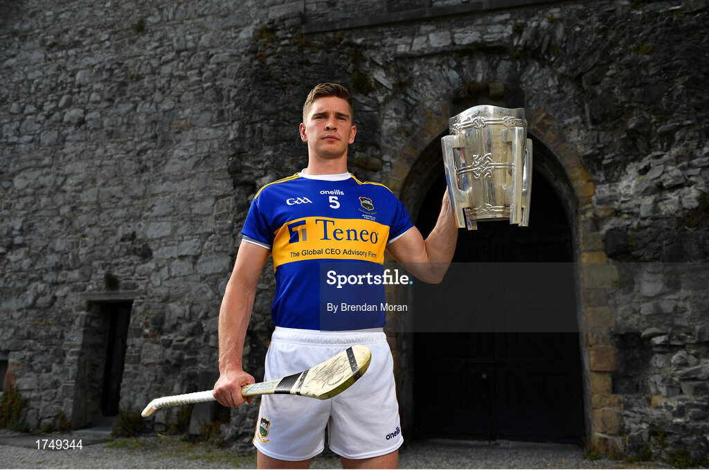 9 July 2019; Brendan Maher of Tipperary poses for a portrait with the Liam MacCarthy Cup during the GAA Hurling All Ireland Senior Championship Series National launch at King John’s Castle in Limerick. Photo by Brendan Moran/Sportsfile