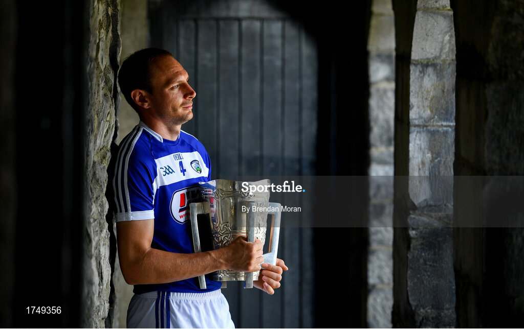 9 July 2019; Joe Phelan of Laois poses for a portrait with the Liam MacCarthy Cup during the GAA Hurling All Ireland Senior Championship Series National launch at King John’s Castle in Limerick. Photo by Brendan Moran/Sportsfile
