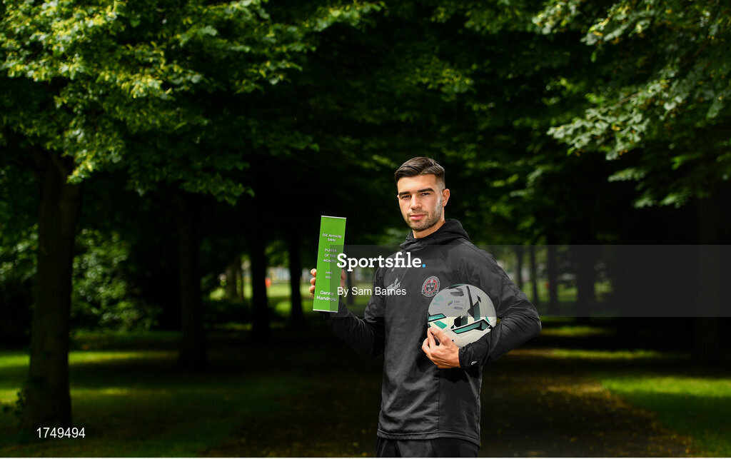 9 July 2019; Danny Mandroiu of Bohemians pictured with his SSE Airtricity/SWAI Player of the Month Award for June 2019 at Ellenfield Park, Whitehall, Dublin. Photo by Sam Barnes/Sportsfile