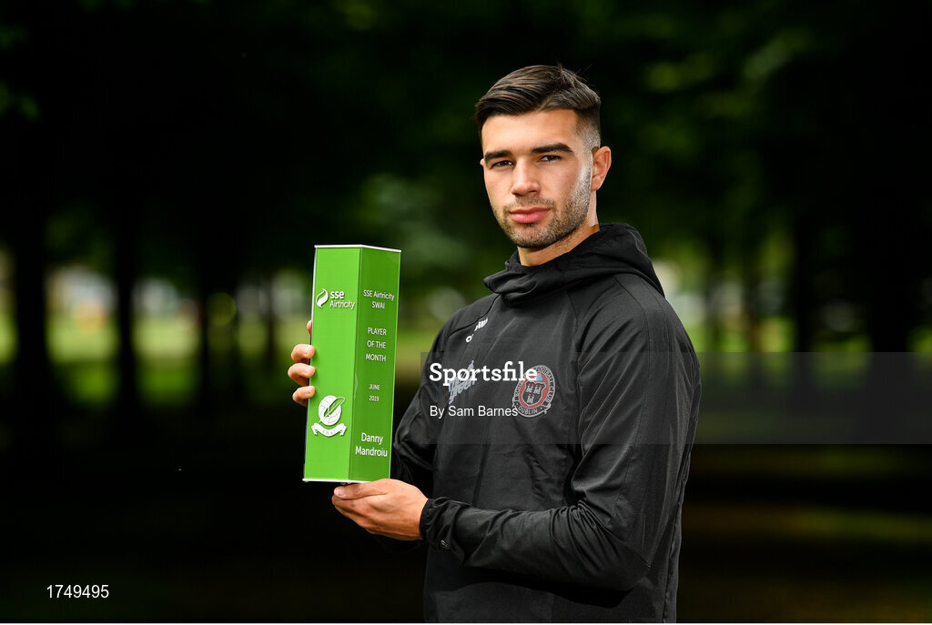 9 July 2019; Danny Mandroiu of Bohemians pictured with his SSE Airtricity/SWAI Player of the Month Award for June 2019 at Ellenfield Park, Whitehall, Dublin. Photo by Sam Barnes/Sportsfile