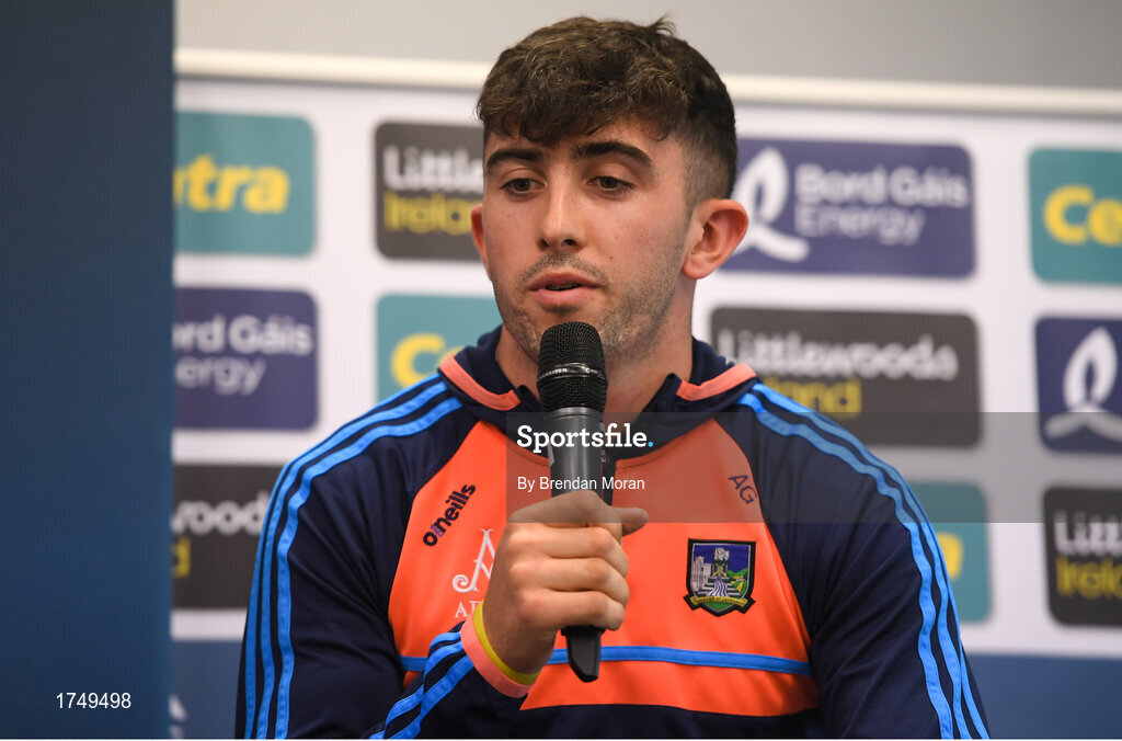 9 July 2019; Aaron Gillane of Limerick speaking at the GAA Hurling All Ireland Senior Championship Series National Launch at Mungret St Pauls GAA Club in Limerick. Photo by Brendan Moran/Sportsfile