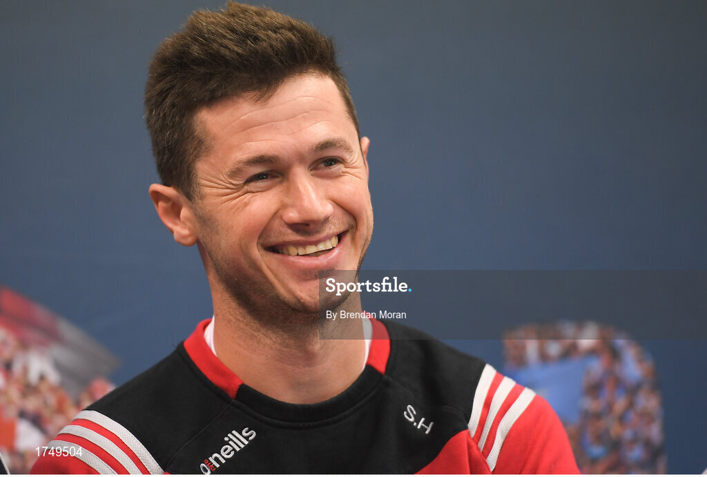 9 July 2019; Seamus Harnedy of Cork speaking at the GAA Hurling All Ireland Senior Championship Series National Launch at Mungret St Pauls GAA Club in Limerick. Photo by Brendan Moran/Sportsfile