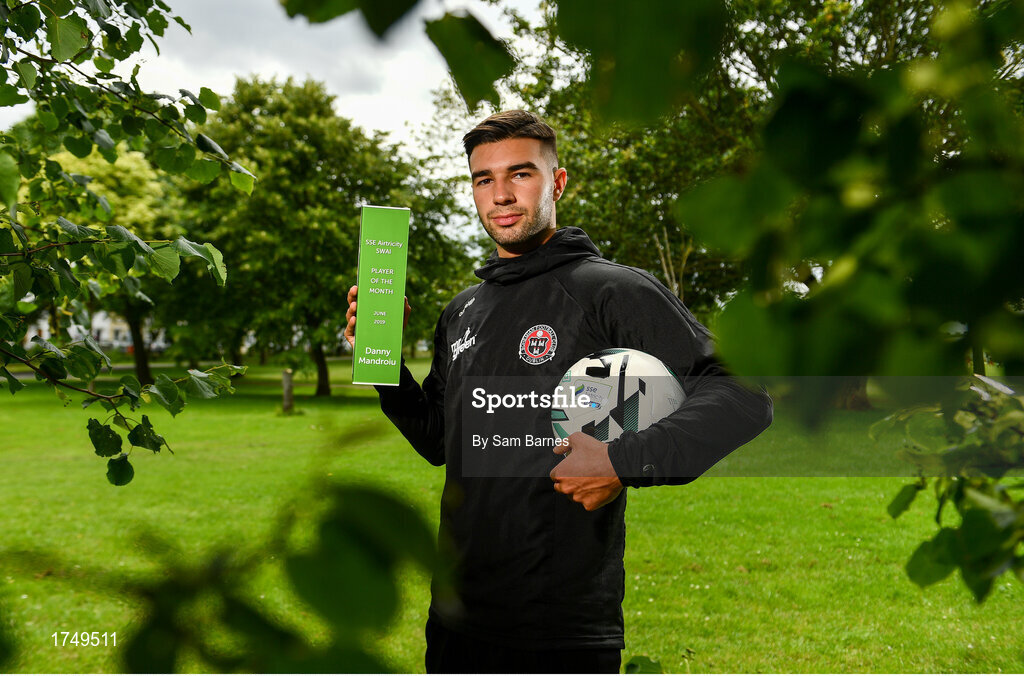 9 July 2019; Danny Mandroiu of Bohemians pictured with his SSE Airtricity/SWAI Player of the Month Award for June 2019 at Ellenfield Park, Whitehall, Dublin. Photo by Sam Barnes/Sportsfile
