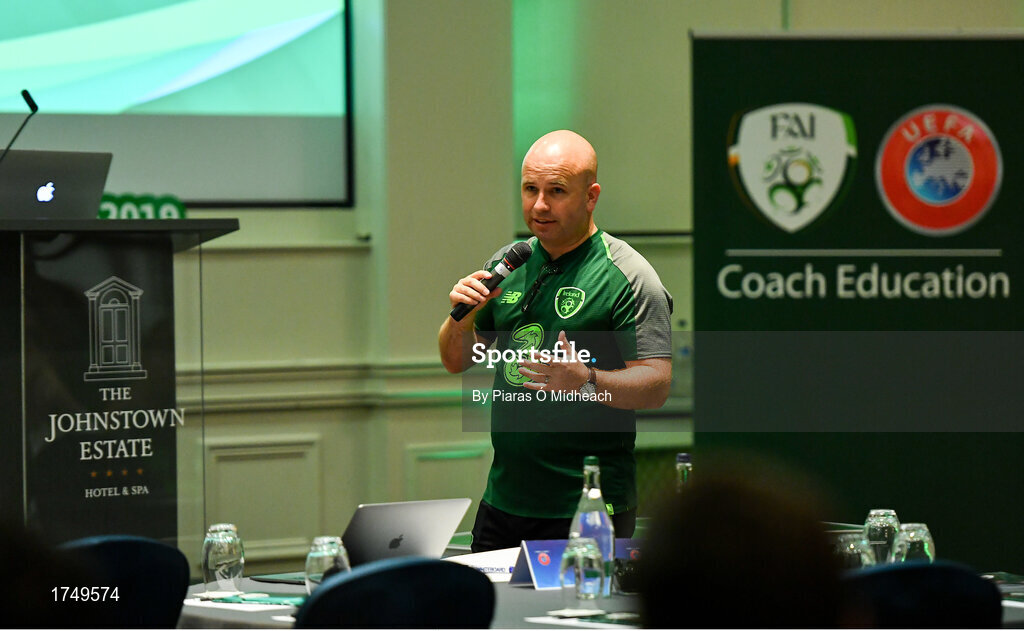 9 July 2019; Niall O'Regan, FAI Coach Education Manager, speaking during a UEFA Pro Licence Course at Johnstown House in Enfield, Meath. Photo by Piaras Ó Mídheach/Sportsfile