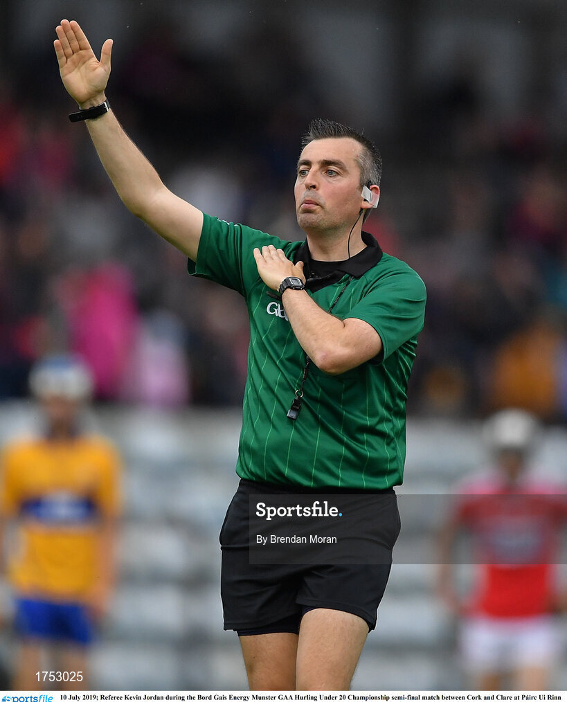 10 July 2019; Referee Kevin Jordan during the Bord Gais Energy Munster GAA Hurling Under 20 Championship semi-final match between Cork and Clare at Páirc Ui Rinn in Cork. Photo by Brendan Moran/Sportsfile