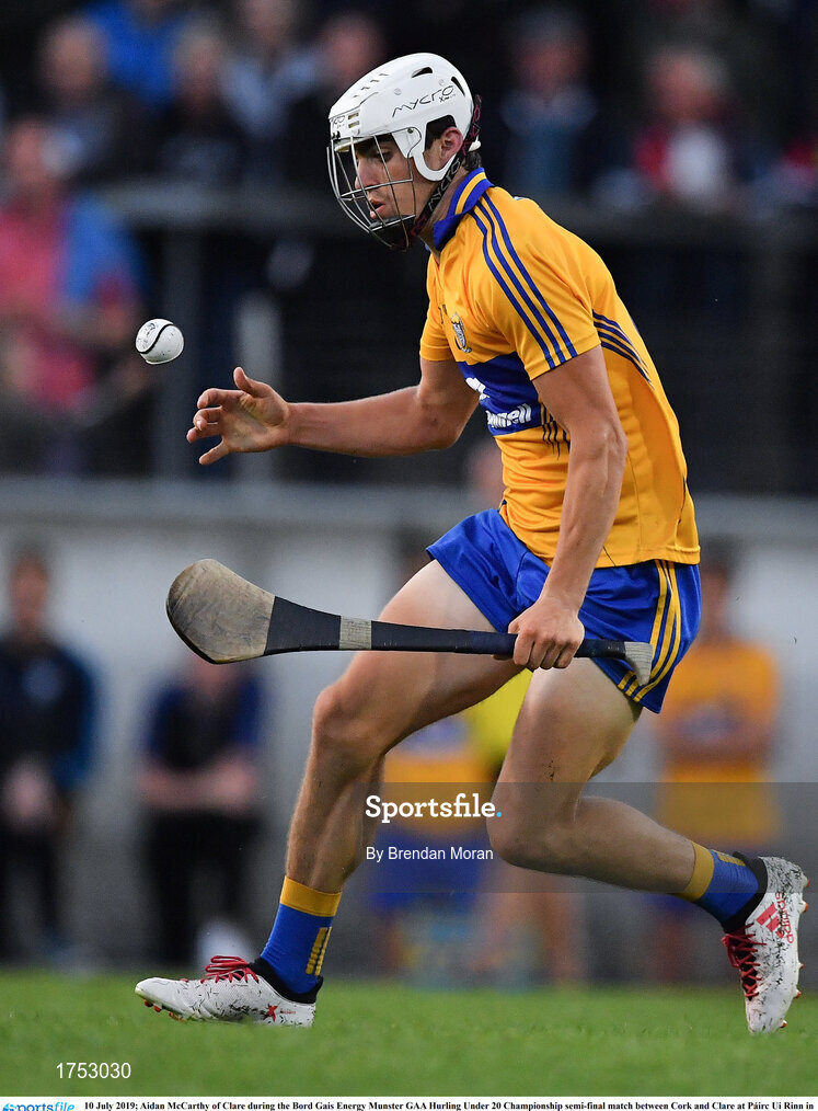 10 July 2019; Aidan McCarthy of Clare during the Bord Gais Energy Munster GAA Hurling Under 20 Championship semi-final match between Cork and Clare at Páirc Ui Rinn in Cork. Photo by Brendan Moran/Sportsfile