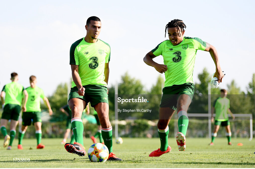 13 July 2019; Ali Reghba and Tyreik Wright, right, during a Republic of Ireland training session prior to the start of the 2019 UEFA European U19 Championships at the FFA Technical Centre in Yerevan, Armenia. Photo by Stephen McCarthy/Sportsfile