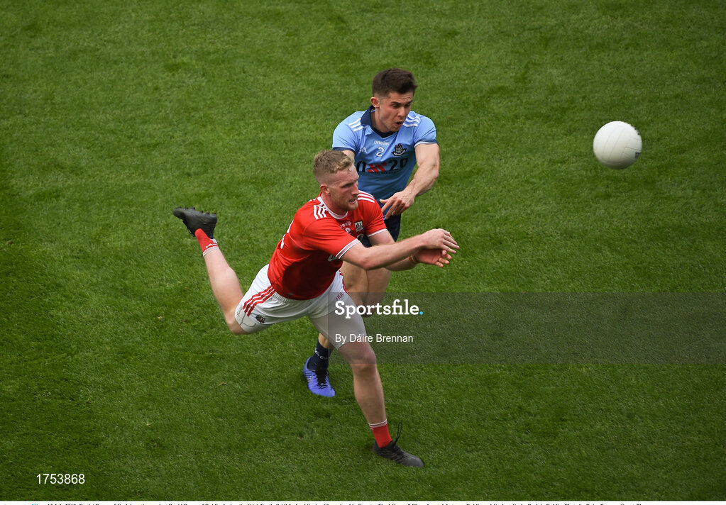 13 July 2019; Ruairí Deane of Cork in action against David Byrne of Dublin during the GAA Football All-Ireland Senior Championship Quarter-Final Group 2 Phase 1 match between Dublin and Cork at Croke Park in Dublin. Photo by Daire Brennan/Sportsfile