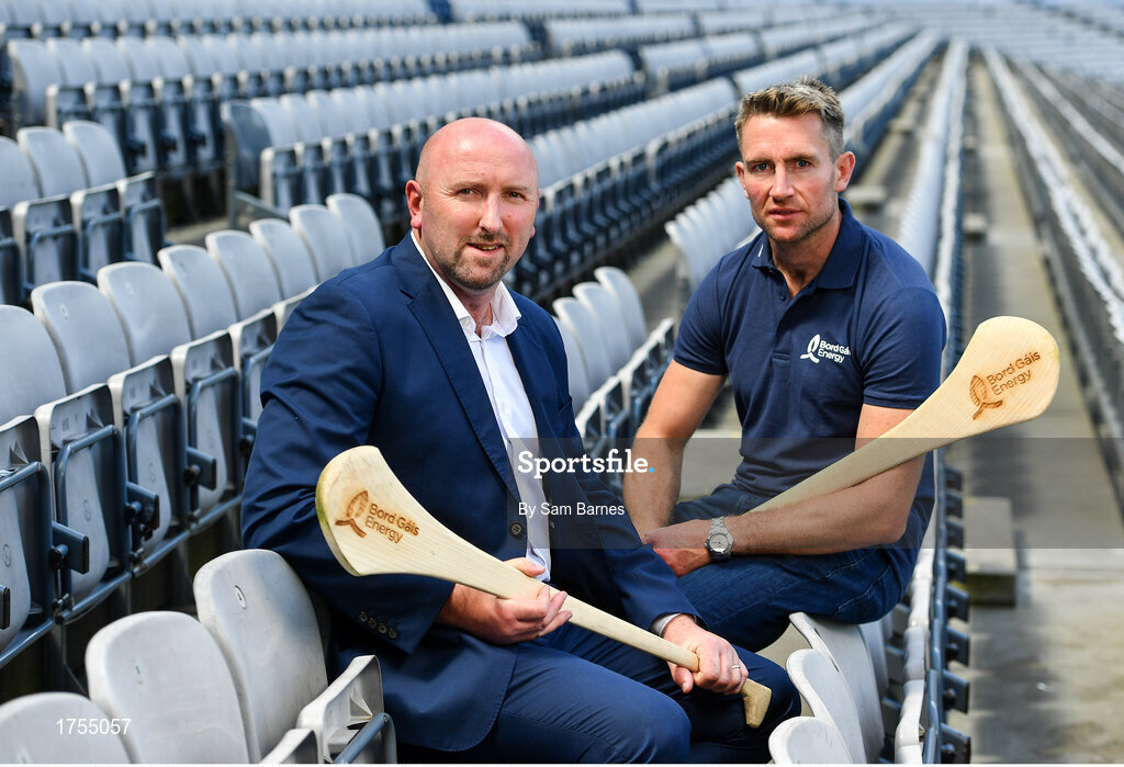 15 July 2019; To coincide with the Bord Gáis Energy GAA Hurling U-20 Provincial Championship Finals preview, Bord Gáis Energy announced two exclusive tours of Croke Park for Rewards Club customers with Cork's Brian Corcoran, left, and Kilkenny's Eddie Brennan. Photo by Sam Barnes/Sportsfile