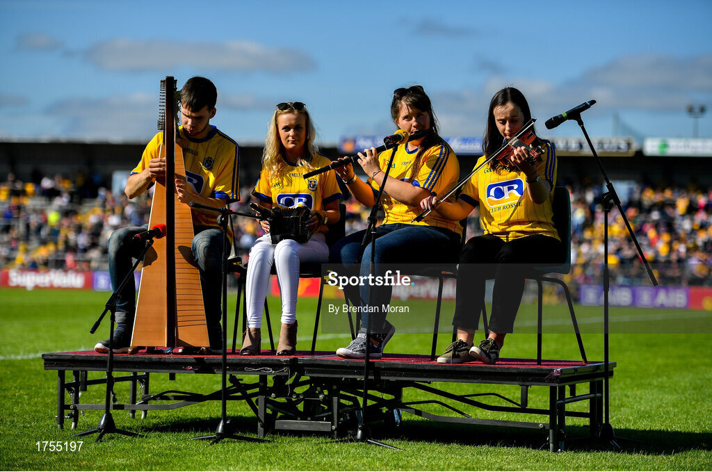 13 July 2019; The St Ronan's Scór Instrumental music group entertain the fans at half-time during the GAA Football All-Ireland Senior Championship Quarter-Final Group 2 Phase 1 match between Roscommon and Tyrone at Dr Hyde Park in Roscommon. Photo by Brendan Moran/Sportsfile
