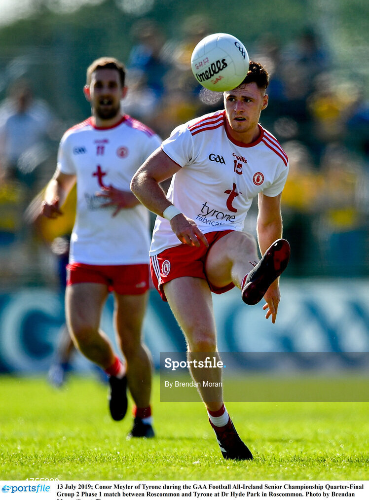 13 July 2019; Conor Meyler of Tyrone during the GAA Football All-Ireland Senior Championship Quarter-Final Group 2 Phase 1 match between Roscommon and Tyrone at Dr Hyde Park in Roscommon. Photo by Brendan Moran/Sportsfile
