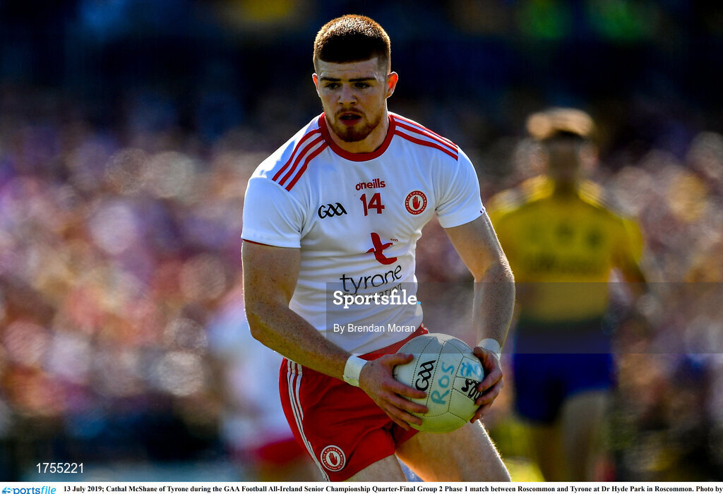 13 July 2019; Cathal McShane of Tyrone during the GAA Football All-Ireland Senior Championship Quarter-Final Group 2 Phase 1 match between Roscommon and Tyrone at Dr Hyde Park in Roscommon. Photo by Brendan Moran/Sportsfile