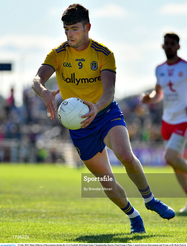 13 July 2019; Shane Killoran of Roscommon during the GAA Football All-Ireland Senior Championship Quarter-Final Group 2 Phase 1 match between Roscommon and Tyrone at Dr Hyde Park in Roscommon. Photo by Brendan Moran/Sportsfile
