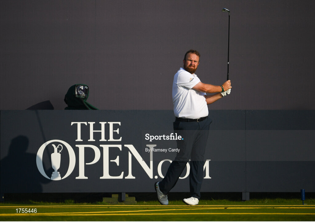 16 July 2019; Shane Lowry of Ireland hits a shot from the first tee during a practice round ahead of the 148th Open Championship at Royal Portrush in Portrush, Co. Antrim. Photo by Ramsey Cardy/Sportsfile