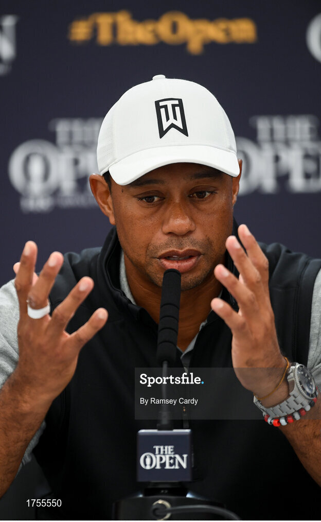 16 July 2019; Tiger Woods of USA during a press conference ahead of the 148th Open Championship at Royal Portrush in Portrush, Co. Antrim. Photo by Ramsey Cardy/Sportsfile