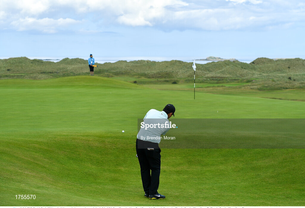 16 July 2019; Patrick Reed of USA on the 16th green during a practice round ahead of the 148th Open Championship at Royal Portrush in Portrush, Co. Antrim. Photo by Brendan Moran/Sportsfile