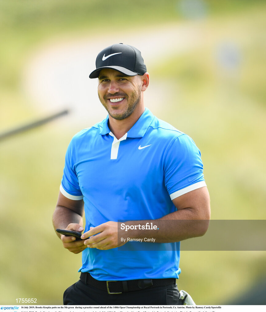 16 July 2019; Brooks Koepka on the 5th green during a practice round ahead of the 148th Open Championship at Royal Portrush in Portrush, Co. Antrim. Photo by Ramsey Cardy/Sportsfile