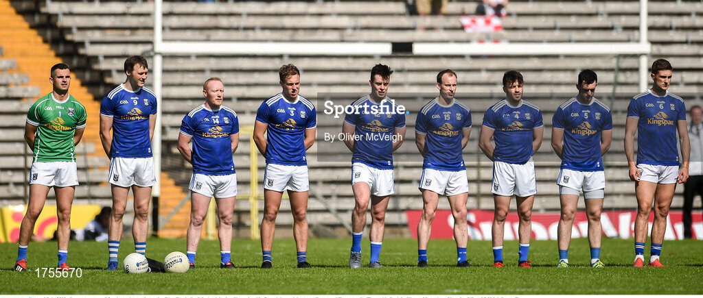 6 July 2019; Cavan team stand for the anthem prior to the GAA Football All-Ireland Senior Championship Round 4 match between Cavan and Tyrone at St. Tiernach's Park in Clones, Monaghan. Photo by Oliver McVeigh/Sportsfile