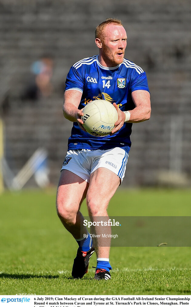 6 July 2019; Cian Mackey of Cavan during the GAA Football All-Ireland Senior Championship Round 4 match between Cavan and Tyrone at St. Tiernach's Park in Clones, Monaghan. Photo by Oliver McVeigh/Sportsfile