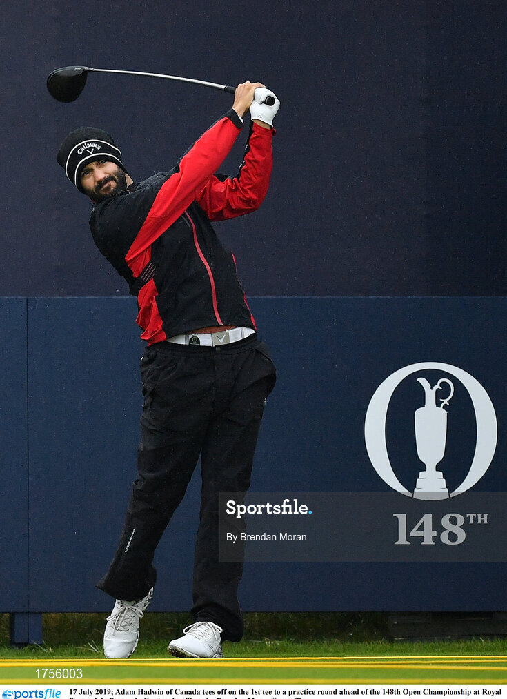 17 July 2019; Adam Hadwin of Canada tees off on the 1st tee during a practice round ahead of the 148th Open Championship at Royal Portrush in Portrush, Co. Antrim. Photo by Brendan Moran/Sportsfile