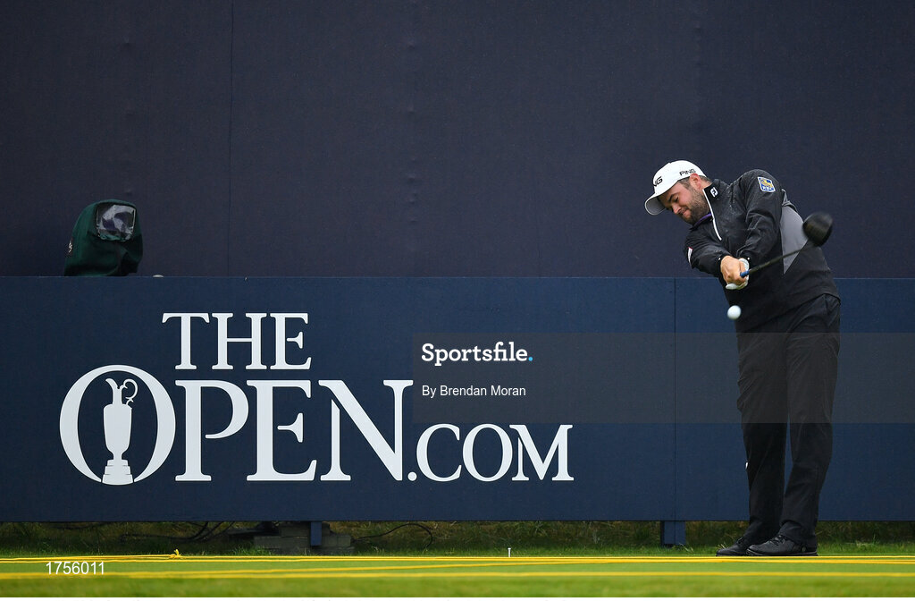 17 July 2019; Corey Conners of Canada tees off on the 1st tee during a practice round ahead of the 148th Open Championship at Royal Portrush in Portrush, Co. Antrim. Photo by Brendan Moran/Sportsfile