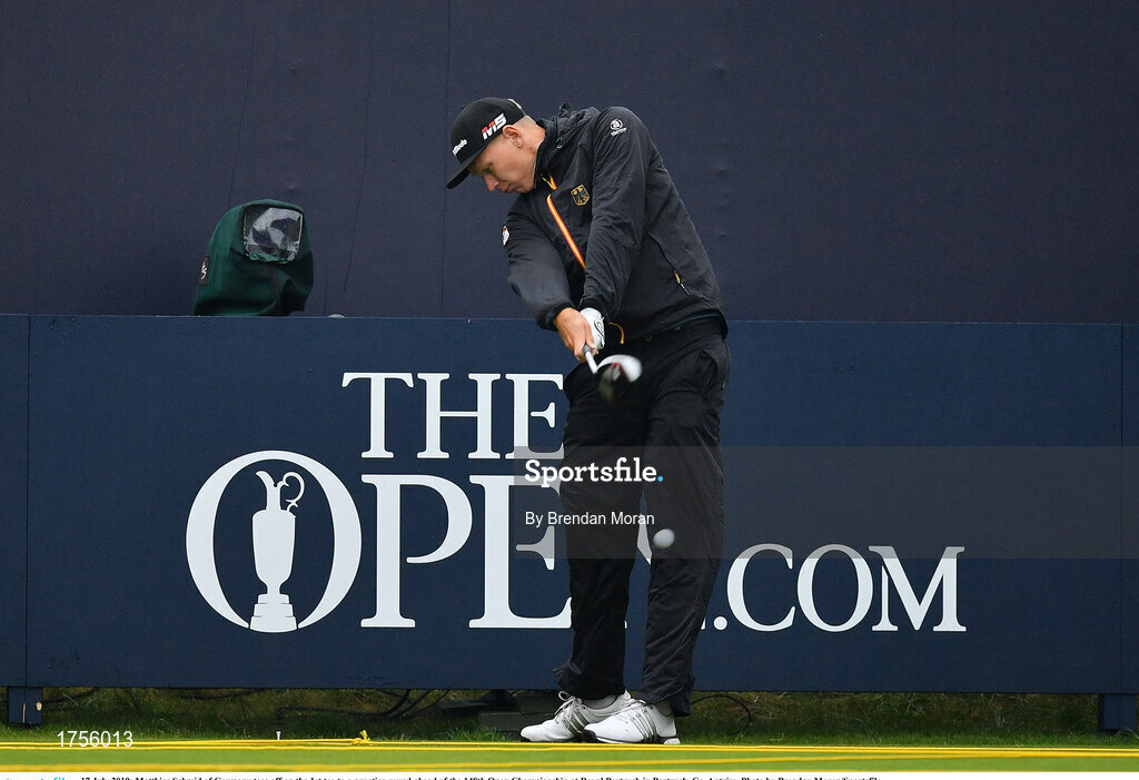 17 July 2019; Matthias Schmid of Germany tees off on the 1st tee during a practice round ahead of the 148th Open Championship at Royal Portrush in Portrush, Co. Antrim. Photo by Brendan Moran/Sportsfile