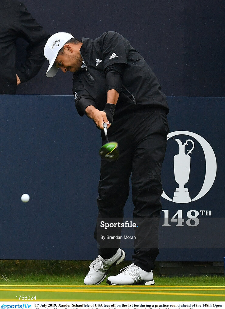 17 July 2019; Xander Schauffele of USA tees off on the 1st tee during a practice round ahead of the 148th Open Championship at Royal Portrush in Portrush, Co. Antrim. Photo by Brendan Moran/Sportsfile