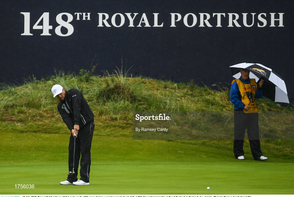 17 July 2019; Bryson DeChambeau of USA putts on the 18th green during a practice round ahead of the 148th Open Championship at Royal Portrush in Portrush, Co. Antrim. Photo by Ramsey Cardy/Sportsfile