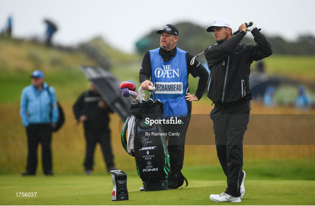 17 July 2019; Bryson DeChambeau of USA watches his shot on the 18th fairway during a practice round ahead of the 148th Open Championship at Royal Portrush in Portrush, Co. Antrim. Photo by Ramsey Cardy/Sportsfile