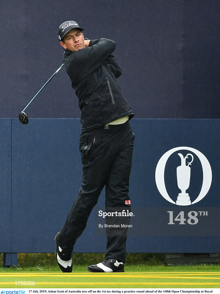 17 July 2019; Adam Scott of Australia tees off on the 1st tee during a practice round ahead of the 148th Open Championship at Royal Portrush in Portrush, Co. Antrim. Photo by Brendan Moran/Sportsfile