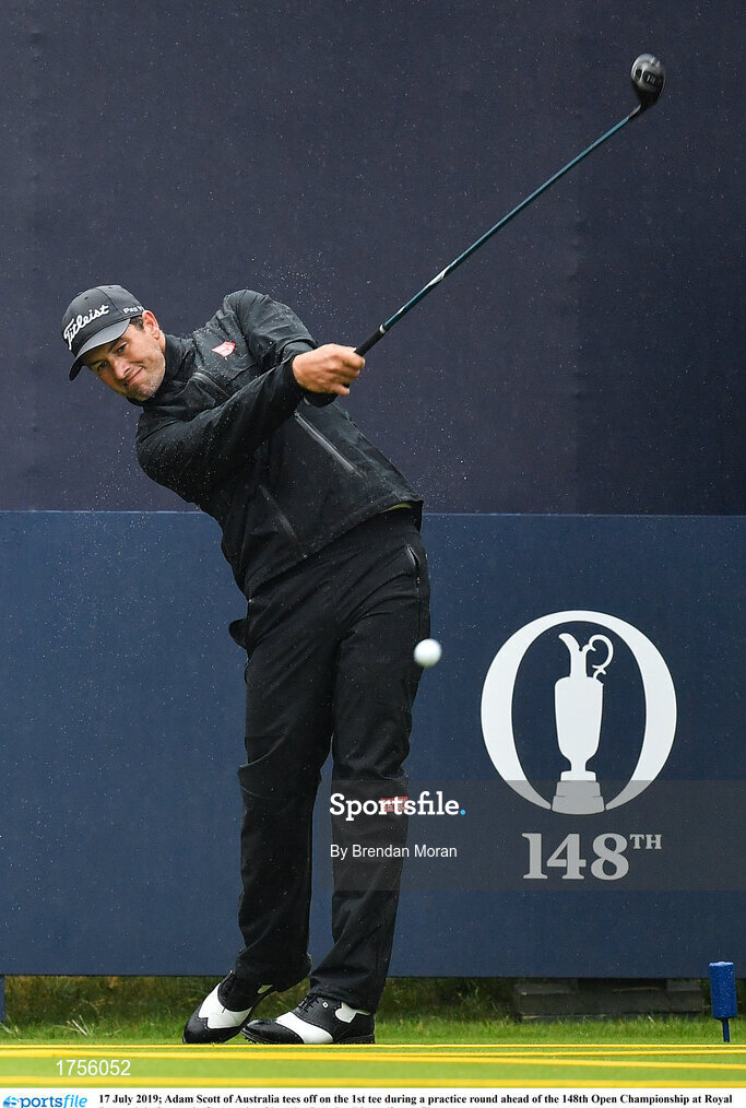 17 July 2019; Adam Scott of Australia tees off on the 1st tee during a practice round ahead of the 148th Open Championship at Royal Portrush in Portrush, Co. Antrim. Photo by Brendan Moran/Sportsfile