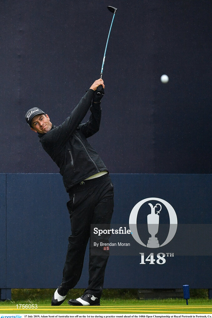 17 July 2019; Adam Scott of Australia tees off on the 1st tee during a practice round ahead of the 148th Open Championship at Royal Portrush in Portrush, Co. Antrim. Photo by Brendan Moran/Sportsfile
