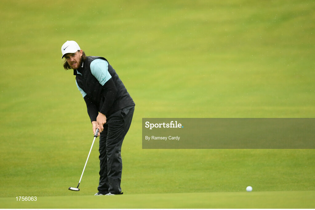 17 July 2019; Tommy Fleetwood of England putts on the 12th green during a practice round ahead of the 148th Open Championship at Royal Portrush in Portrush, Co. Antrim. Photo by Ramsey Cardy/Sportsfile