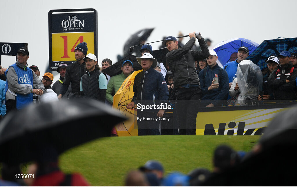 17 July 2019; Justin Rose of England tees off from the 14th tee during a practice round ahead of the 148th Open Championship at Royal Portrush in Portrush, Co. Antrim. Photo by Ramsey Cardy/Sportsfile