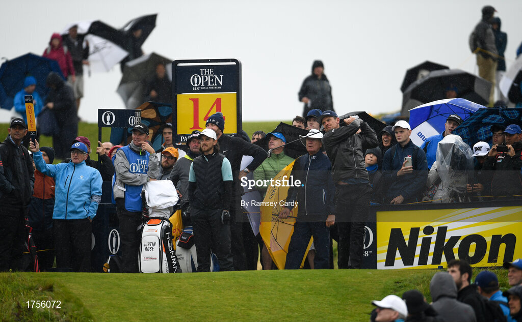 17 July 2019; Justin Rose of England tees off from the 14th tee during a practice round ahead of the 148th Open Championship at Royal Portrush in Portrush, Co. Antrim. Photo by Ramsey Cardy/Sportsfile