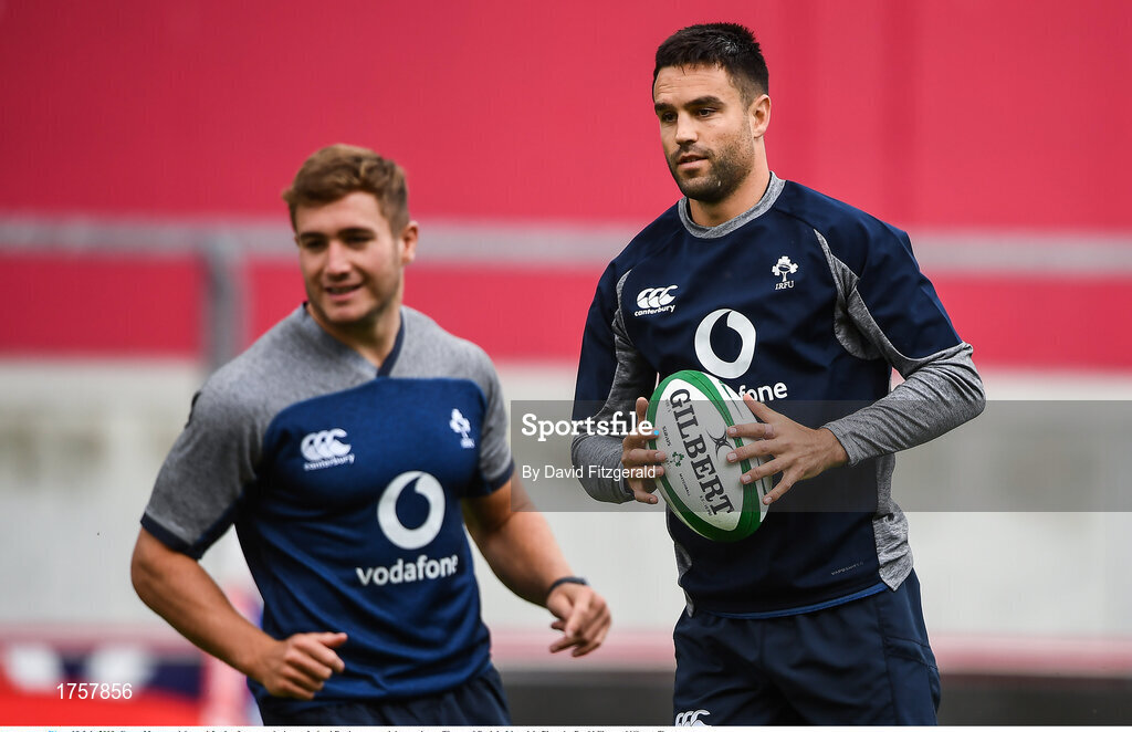 19 July 2019; Conor Murray, right, and Jordan Larmour during an Ireland Rugby open training session at Thomond Park in Limerick. Photo by David Fitzgerald/Sportsfile